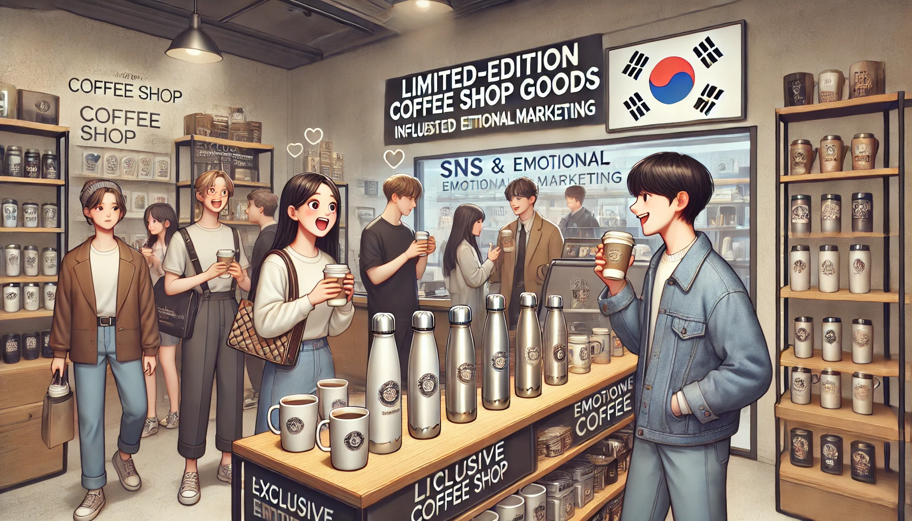 SNS와 결합한 ‘인스타그래머블’한 감성 카페가 인기 있으며, 한국과 일본에서는 한정판 MD 굿즈 마케팅이 강력한 효과를 발휘함.
